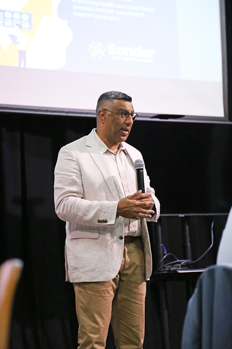 Sarah Fraser, Executive Manager, Innovation and Excellence at Sonder opened the symposium and invited Sageran Naidoo, CEO of Sonder to discuss the important role of community services organisations in research and evaluation for better health outcomes.